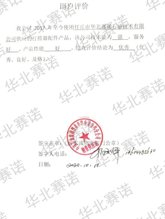 "Enthusiasm, integrity and punctuality" are our technical support and after-sales service purposes. "Customer first, quality first, timely response" is our service principle. We are a professional research team. He has rich on-site experience and the ability to solve various complex technical problems. The cooperative manufacturers are extensive. Various types of mechanical products can be designed and processed according to user requirements. At the same time, in order to better serve oil drilling and fishing. We are also constantly innovating in technology and expanding more professional fields.